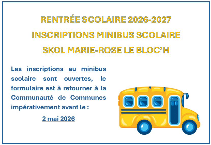 Les inscriptions pour le minibus scolaire de l’école Marie-Rose Le Bloc’h sont ouvertes.