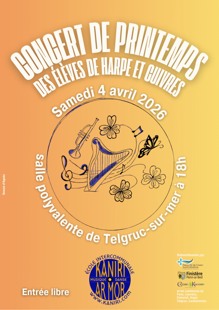 L’école intercommunale de musique Kaniri Ar Mor est heureuse de vous présenter ses élèves de harpe et cuivres, à l’occasion du concert de printemps organisé samedi 4 avril 2026 à 18h à la salle polyvalente.