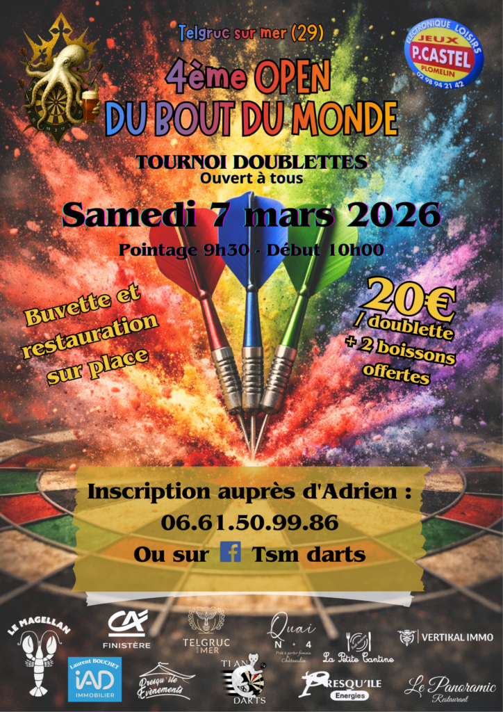 L’équipe de TSM DARTS est heureuse de vous retrouver pour la 4ème édition de son tournoi de fléchettes, samedi 7 mars 2026, à partir de 9h30 pour le pointage, à la salle polyvalente.