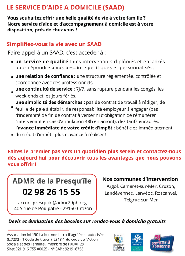 ADMR de la Presqu’île : 02.98.26.15.55 – accueilpresquile@admr29ph.org